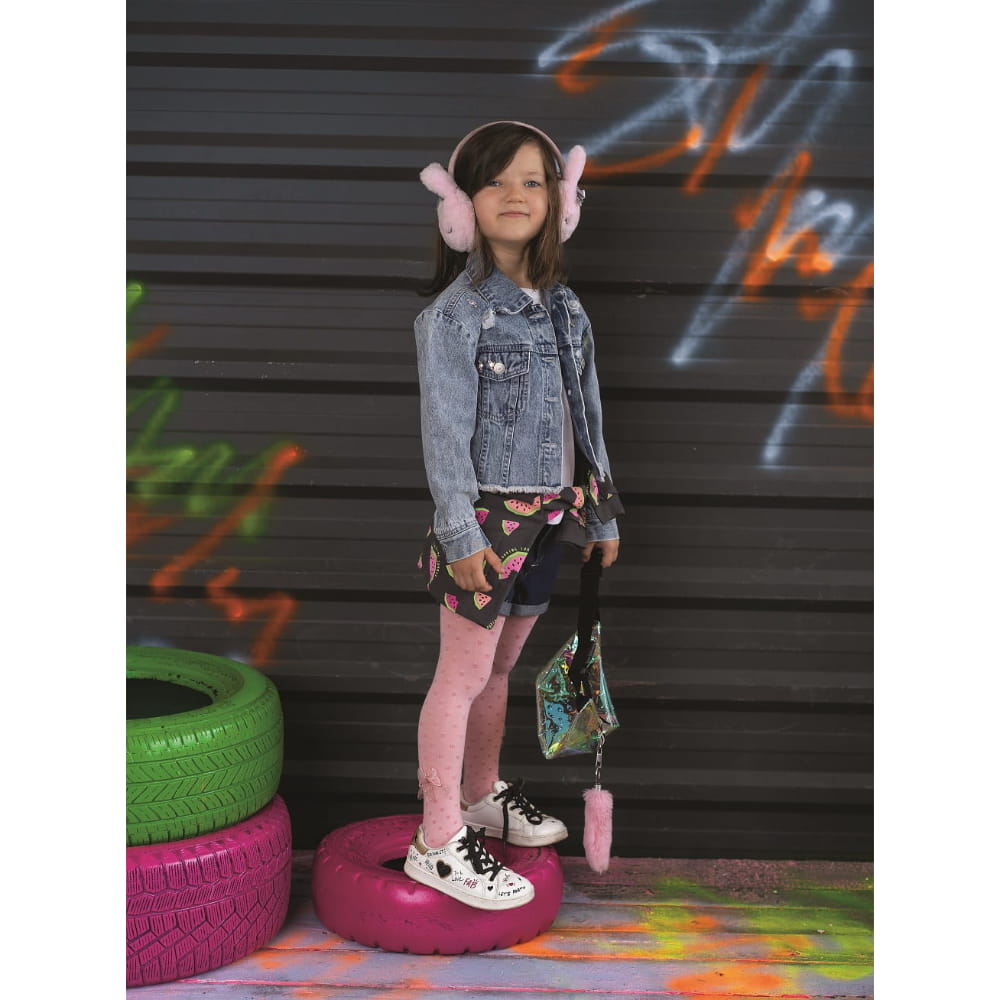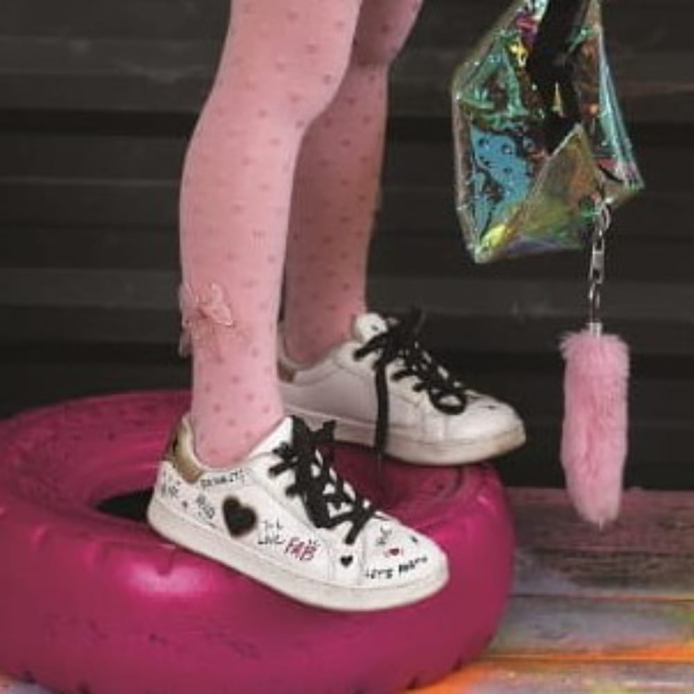 Dziewczęce rajstopy wzorzyste wykonane z przędzy bambusowej z doszytą aplikacją