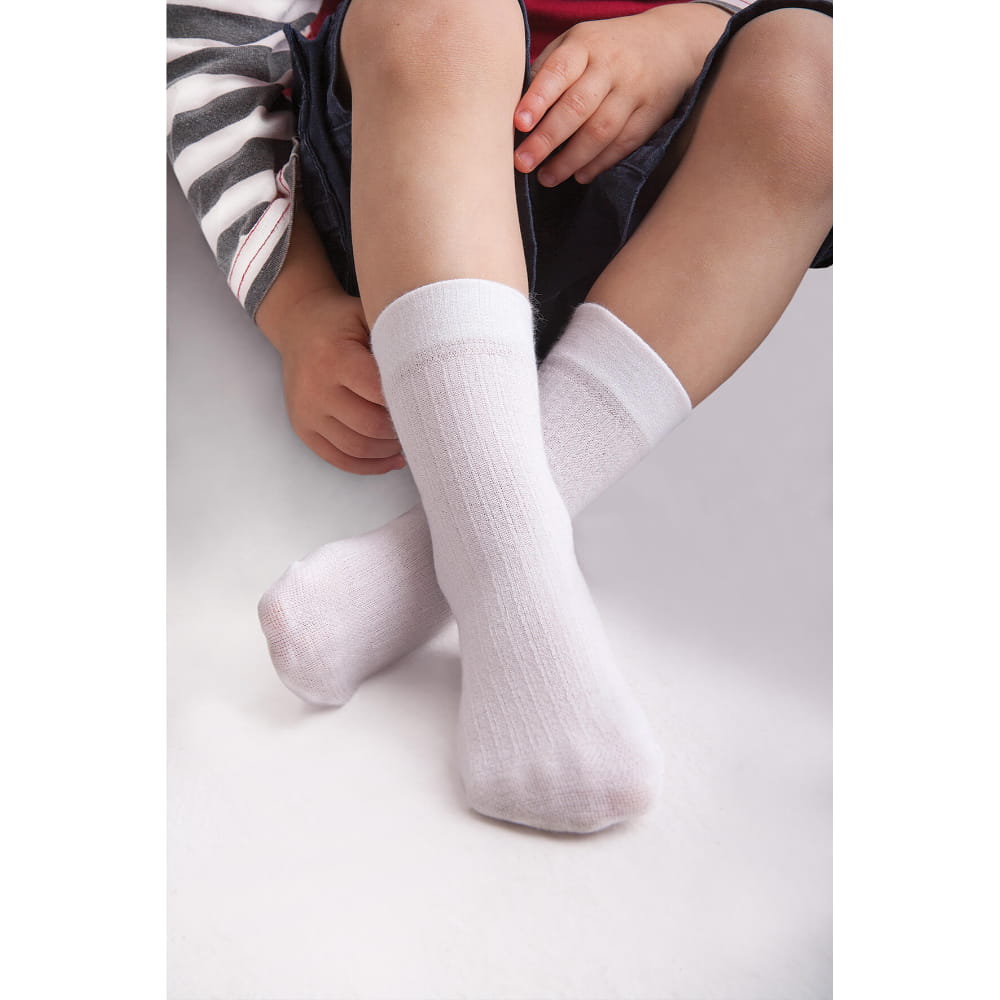 Prążkowane skarpetki dla dzieci wykonane z surowców pochodzenia naturalnego wiskoza.