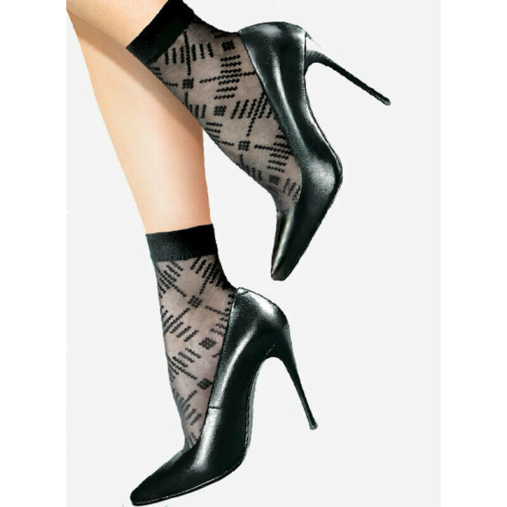 Damskie skarpetki wzorzyste Felicia o grubości 20 Den to model, który świetnie uzupełni stylizację każdej kobiety. Brak zaznaczonej pięty pozwala łączyć je z różnym obuwiem.