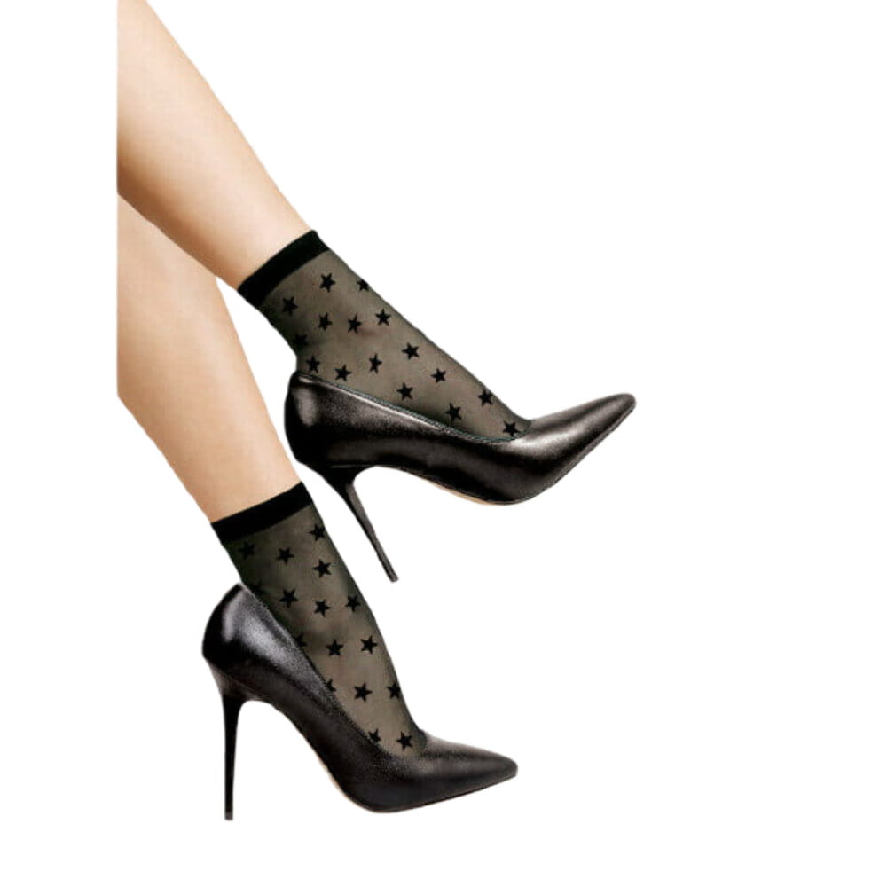 Skarpety STELLINE z cienkim wzorem w gwiazdki to wspaniały dodatek . uniwersalna propozycja dla wszystkich kobiet, nie tylko ze względu na piękny wzór, ale także ze względu na... włoską jakość. Co to oznacza w praktyce? Nasze skarpetki w gwiazdki nie tracą kształtu i po praniu wracają do swojego pierwotnego kształtu. Są odporne na uszkodzenia mechaniczne. Zamów je i przekonaj się...