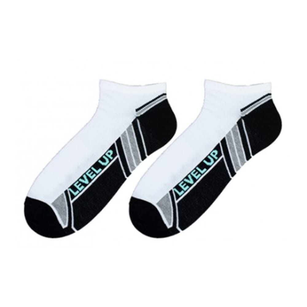 Bawełny, która zabezpiecza kostkę. Posiadają powierzchnię, która odprowadza wilgoć. Mają profilowaną piętę oraz miękki szew. Dodatkowe ściągacze zapobiegają przesuwaniu się skarpetek.