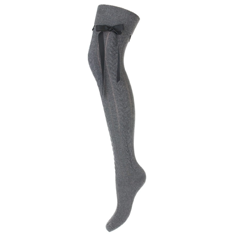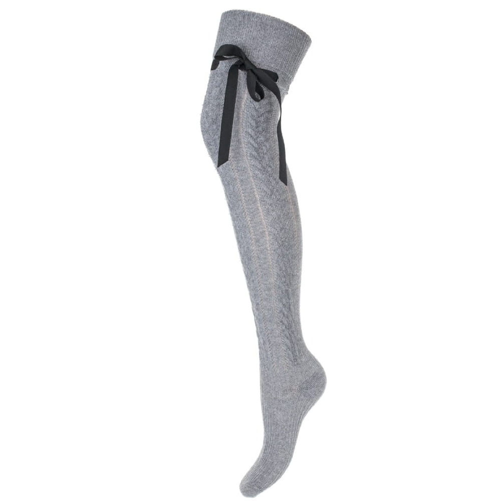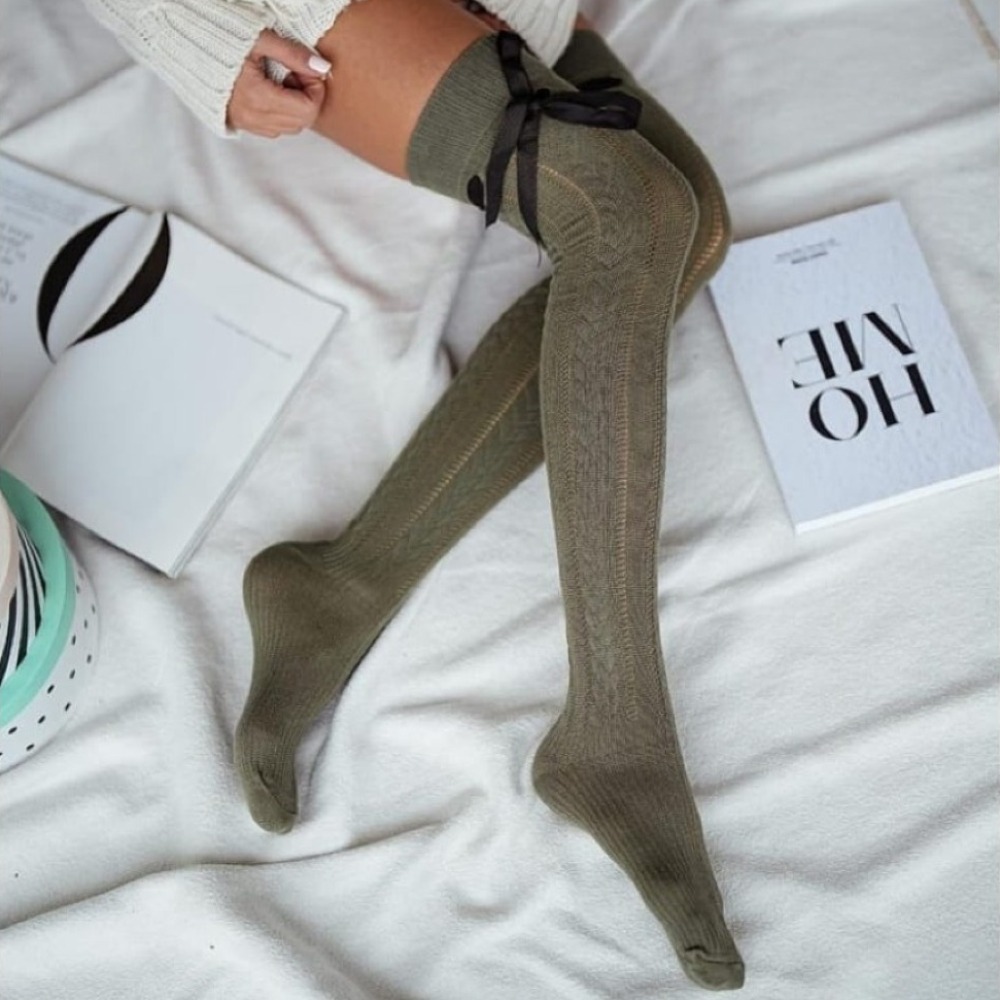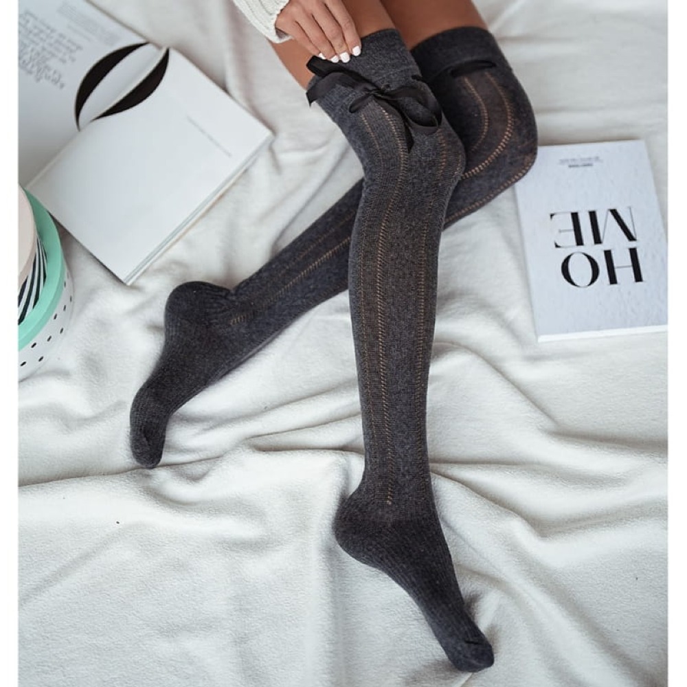 Długie damskie zakolanówki, wzór warkocz z rypsową wstążką, wiązaną na udzie. Doskonale dopasowują się do kształtów ciała, co sprawia, że są idealne na romantyczne wieczory. W tych zakolanówkach każda kobieta poczuje się zmysłowo i uwodzicielsko. Świetnie nadają się na chłodniejsze dni.