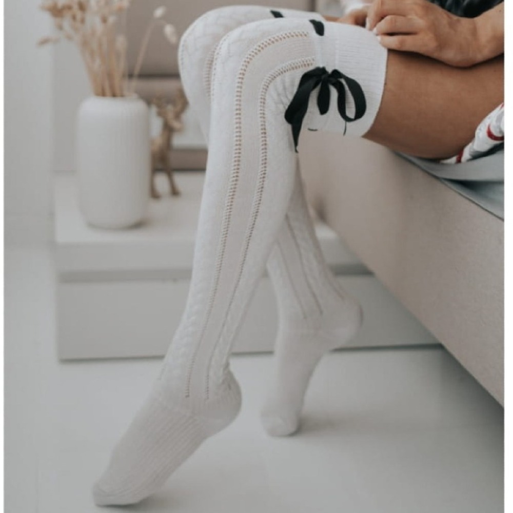 Zakolanówki Bawełniane MILENA WARKOCZ ze wstążką do wiązania